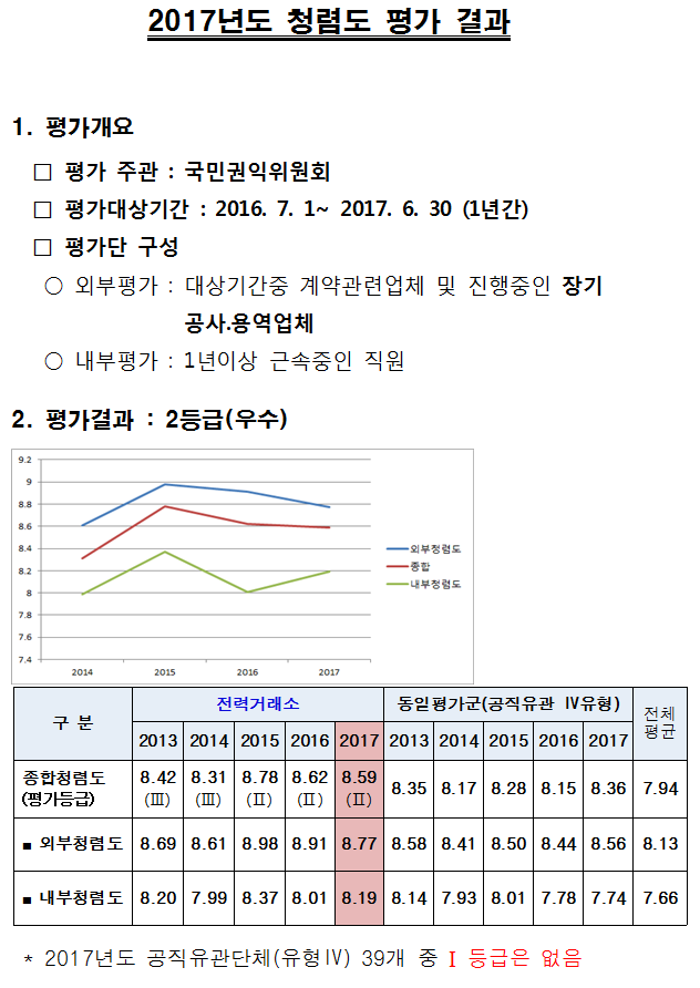 2017년도 국민권익위원회 청렴도 측정 결과 작성일2017/12/06 16:58 작성자김영호 조회수35,472 연락처061-330-8181 2017년도 국민권익위원회 청렴도 측정 결과 첨부파일 2017년도 국민권익위원회 청렴도 측정결과.png (49.61KB / 다운로드 420회) 다운로드