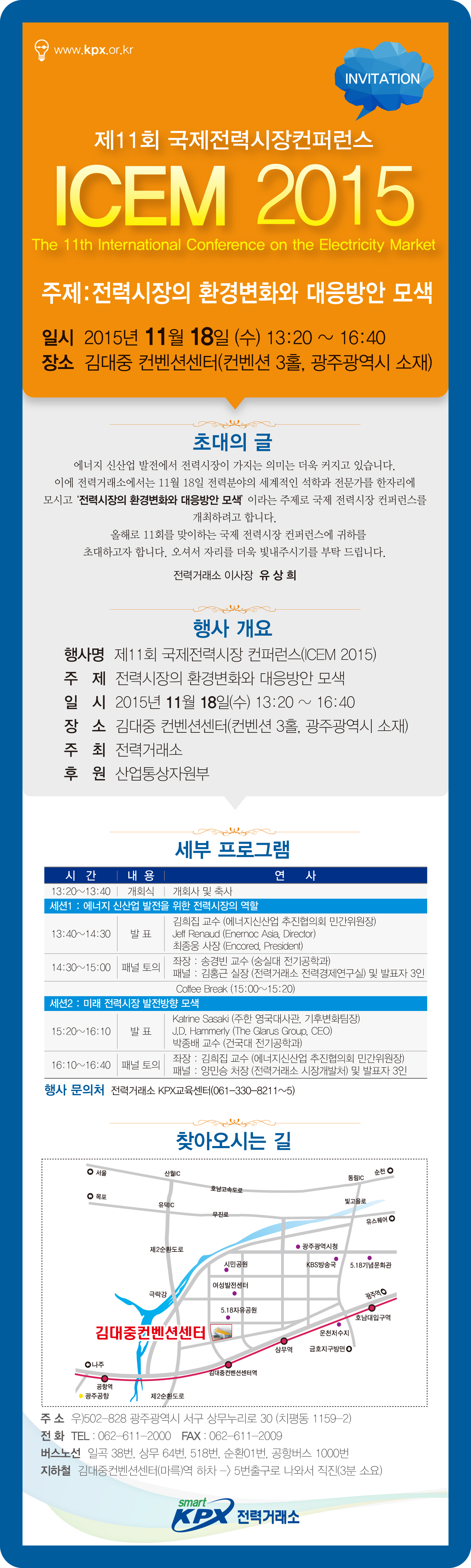 2015년 11월 18일(수)에 개최될 제11회 국제전력시장 컨퍼런스(ICEM 2015)를 아래와 같이 개최하고자 합니다.